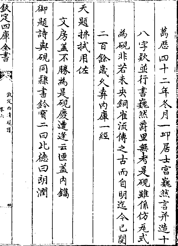 御制题明制瓦砚内府库藏分典守各司存不相授受偶搜所弆旧陶泓