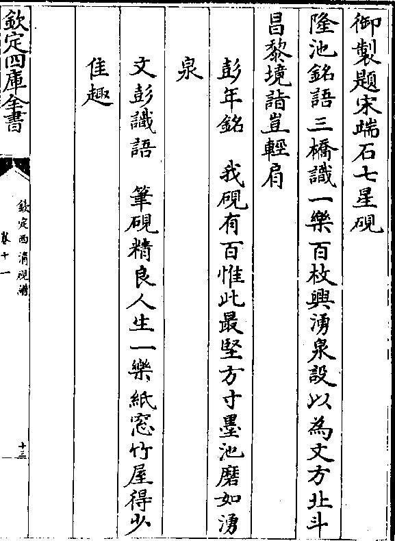 御制题宋端石七星砚隆池铭语三桥识一乐百枚兴涌泉设以为文方北斗