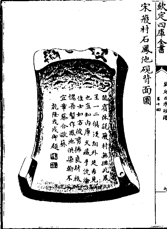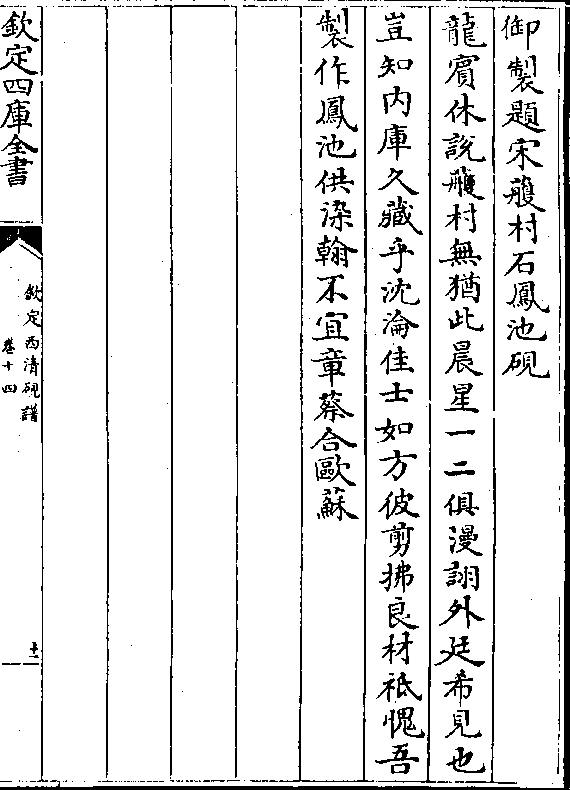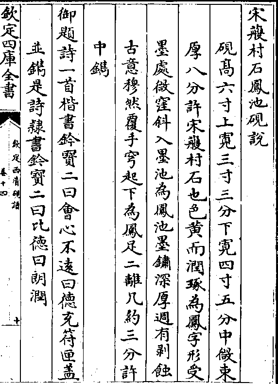 御制题旧端石凤池砚怀铅一例提携便小篆分明泐凤池疑是早朝归贾至