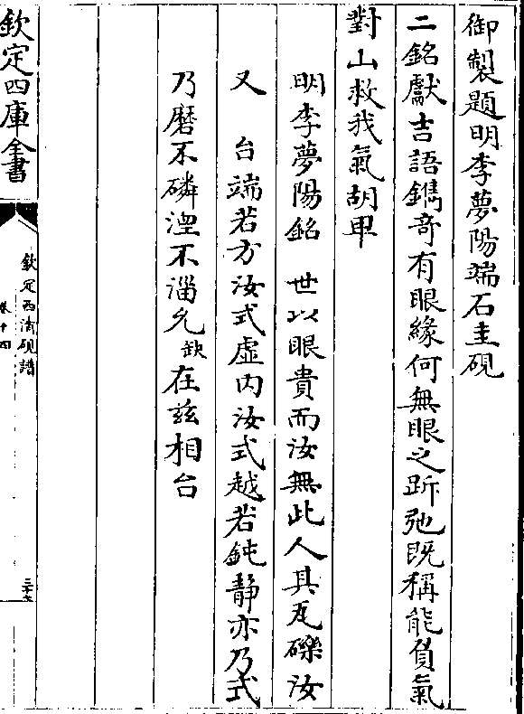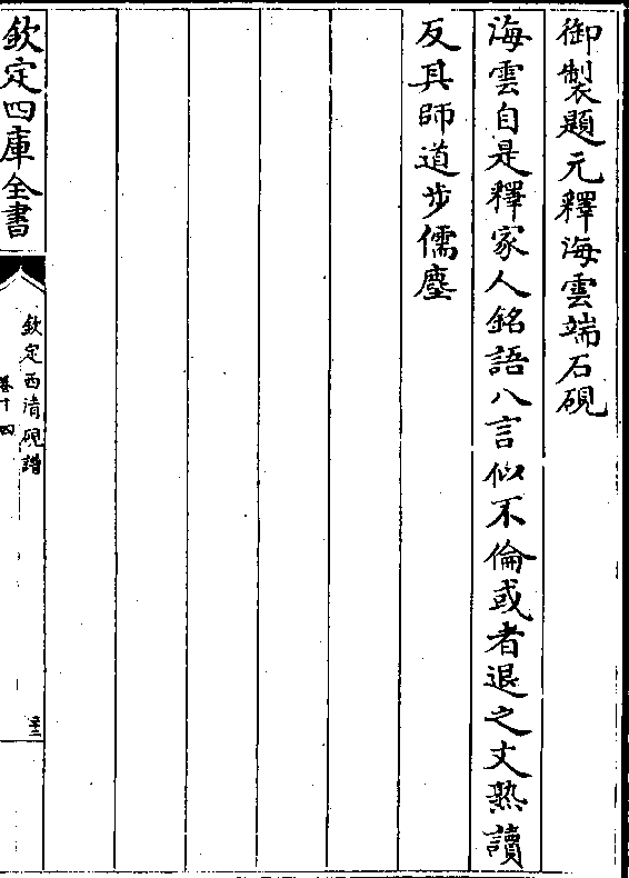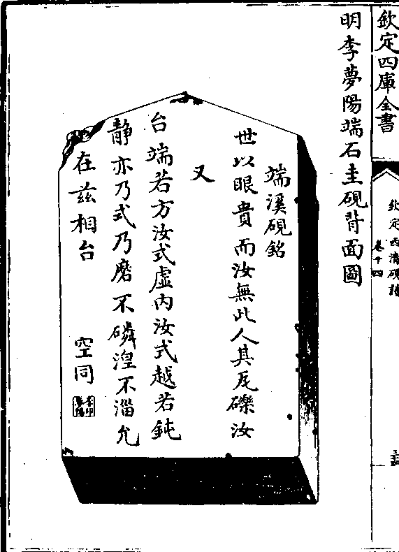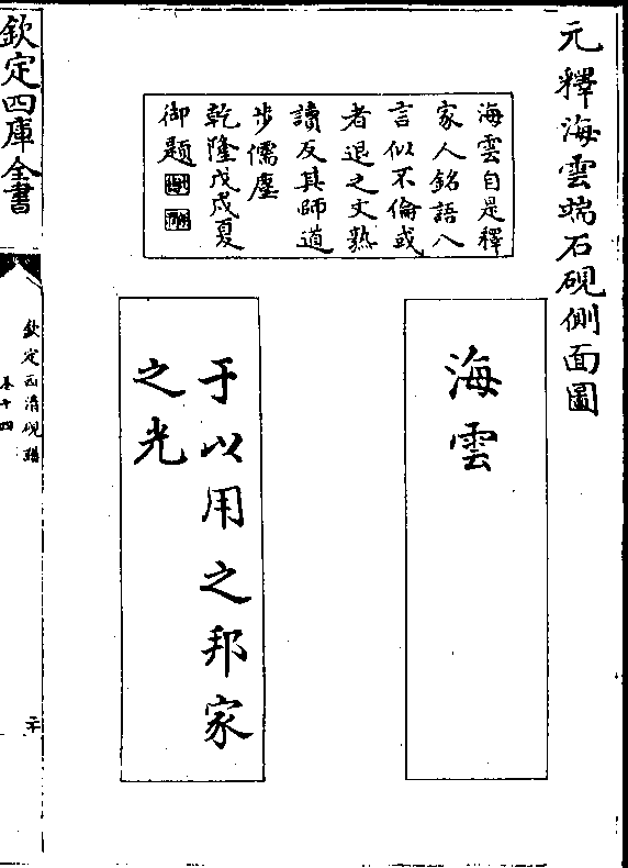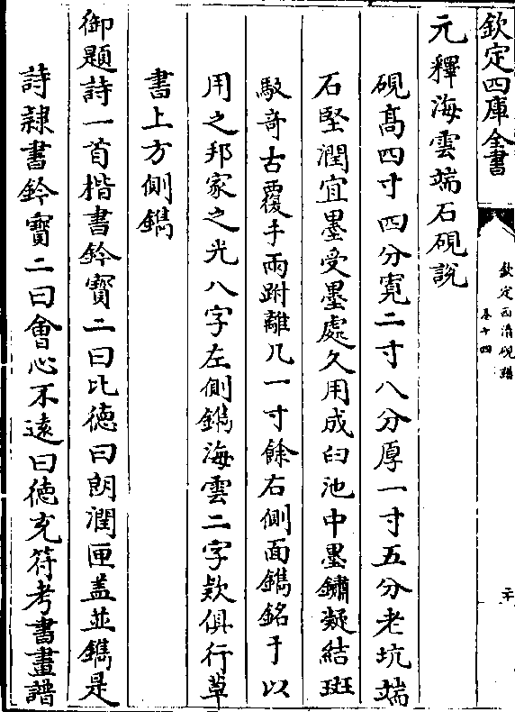 御制题明苍雪庵凤池砚非端弗玉玉其质责实循名名则疑既是中峰缁侣用
