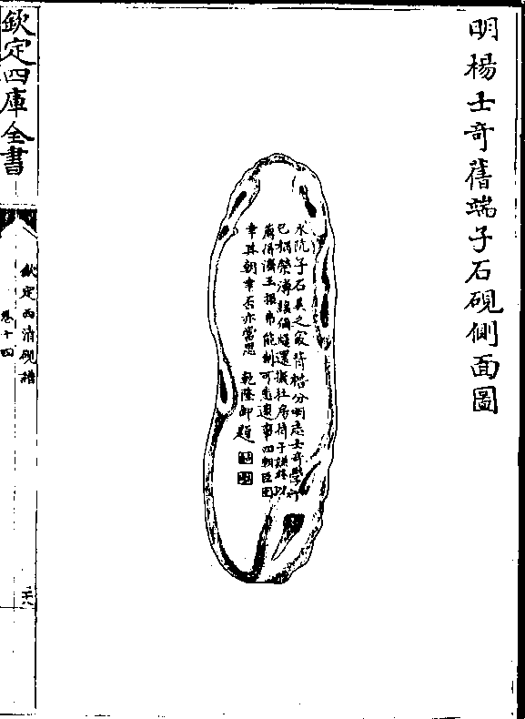 明杨明时子石科斗砚说砚椭圆高四寸宽三寸五分中厚七分许边少薄