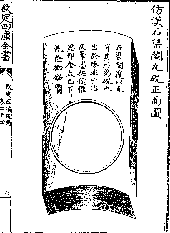 御制仿汉石渠阁瓦砚铭石渠阁覆以瓦肖其形为砚也出于琢非出冶友笔