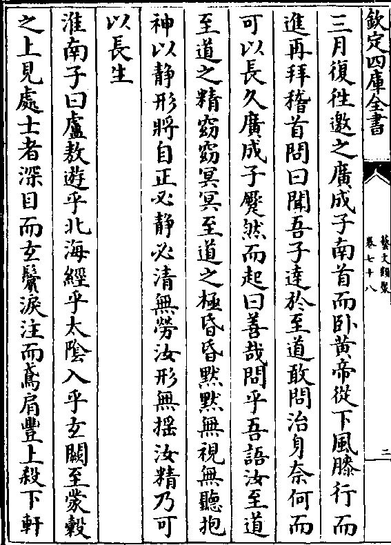 三月复往邀之广成子南首而卧黄帝从下风膝行而进再拜稽首问曰闻吾子达于至道敢问治身奈何而
