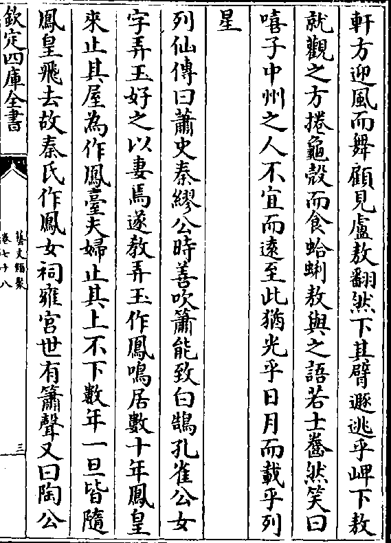轩方迎风而舞顾见卢敖翻然下其臂遁逃乎崥下敖就观之方捲龟壳而食蛤蜊敖与之语若士齤然笑曰