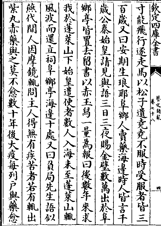 寸能飞行逐走马以松子遗尧尧不服时受服者皆三百岁又曰安期生琅耶阜乡人卖药海边时人皆言千