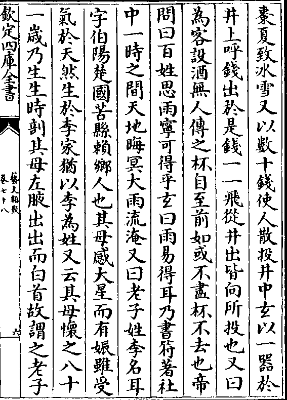枣夏致冰雪又以数十钱使人散投井中玄以一器于井上呼钱出于是钱一一飞从井出皆向所投也又曰