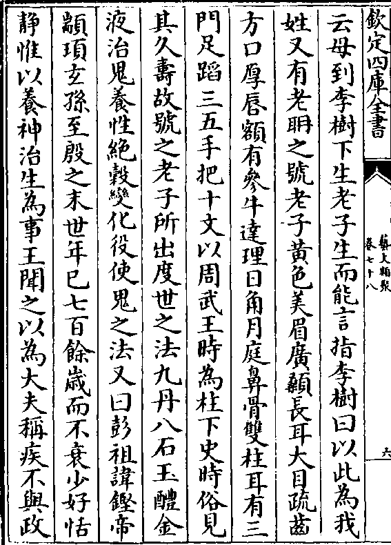 云母到李树下生老子生而能言指李树曰以此为我姓又有老聃之号老子黄色美眉广颡长耳大目疏齿