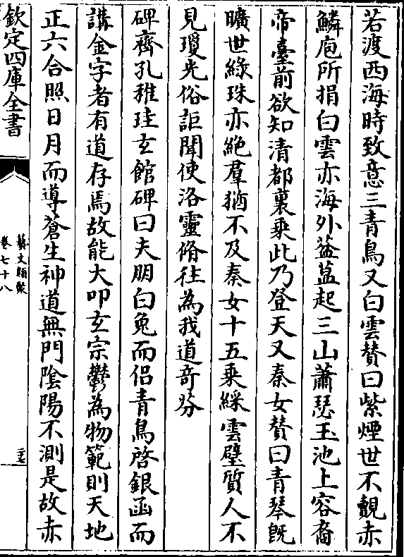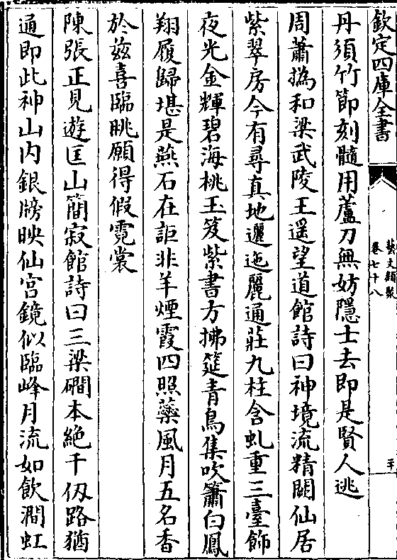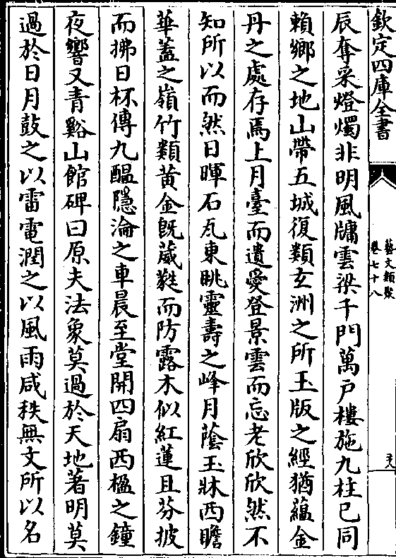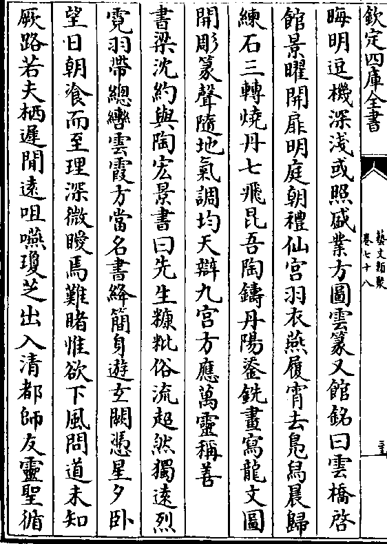 晦明逗机深浅或照盛业方图云篆又馆铭曰云桥启馆景曜开扉明庭朝礼仙宫羽衣燕履宵去凫舄晨归