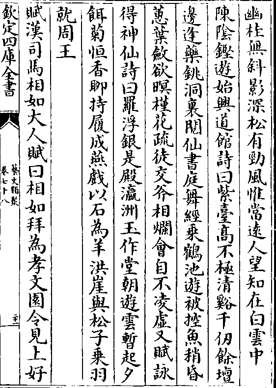 立秦望仙表汉髣髴神灵依稀宫观峨峨林屋轮奂徘徊庭罗花鸟室静尘埃