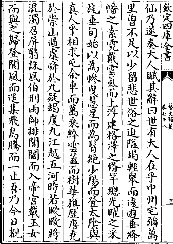 紫阁事甚笼樊隐沦岩洞餐饵芝髓忽矣身轻俄然羽