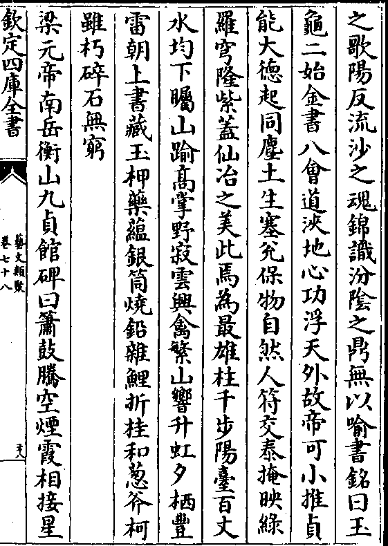 碧简绚采垂文琼函玉检绮席绣巾兰釭列耀金炉飏薰又茅山长沙馆碑曰夫万象森罗不离两仪所育百