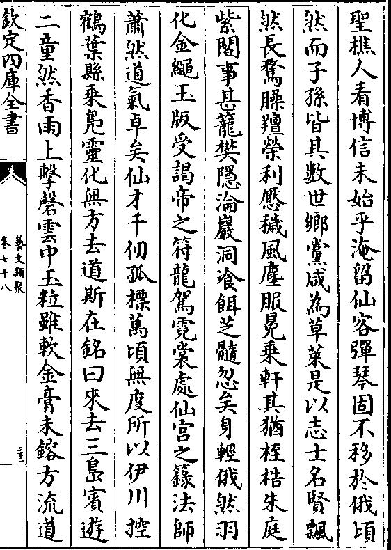 圣樵人看博信未始乎淹留仙客弹琴固不移于俄顷然而子孙皆其数世乡党咸为草莱是以志士名贤飘