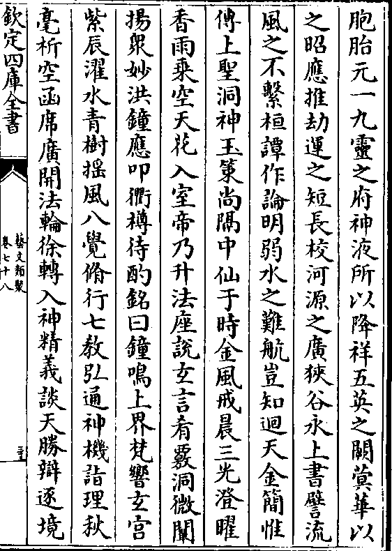 胞胎元一九灵之府神液所以降祥五英之阙蓂华以之昭应推劫运之短长校河源之广狭谷永上书譬流