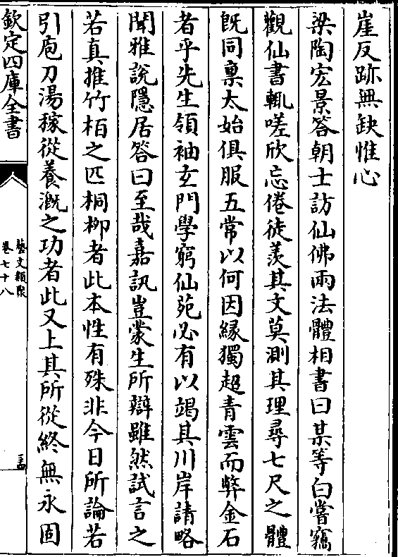 崖反迹无缺惟心梁陶宏景答朝士访仙佛两法体相书曰某等白尝窃