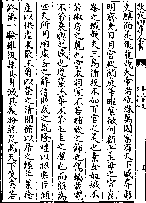 文骥而羡飞龙哉夫帝者位殊万国富有天下威尊彰明齐光日月宫殿阙庭等曜紫微何顾乎王母之宫昆