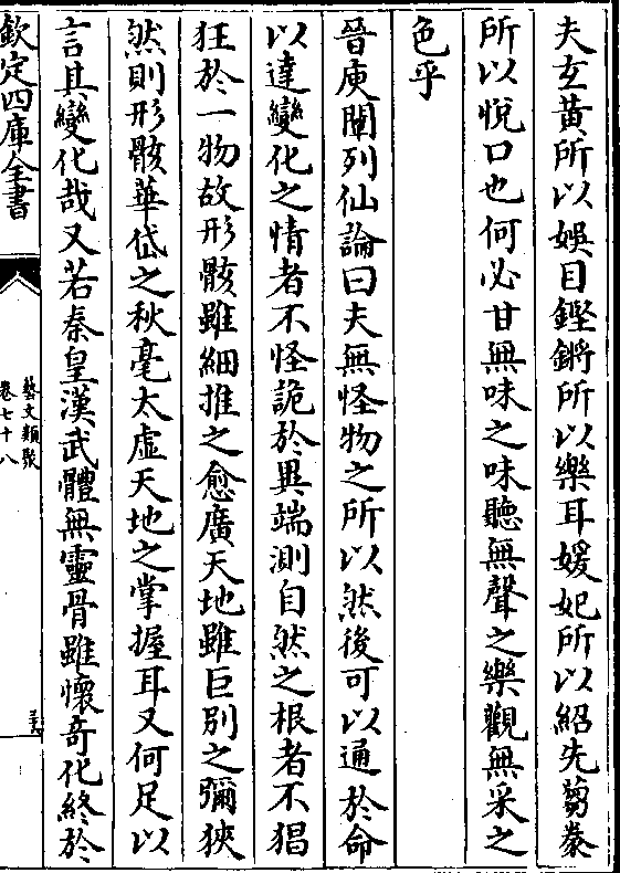 夫玄黄所以娱目铿锵所以乐耳媛妃所以绍先刍豢所以悦口也何必甘无味之味听无声之乐观无采之