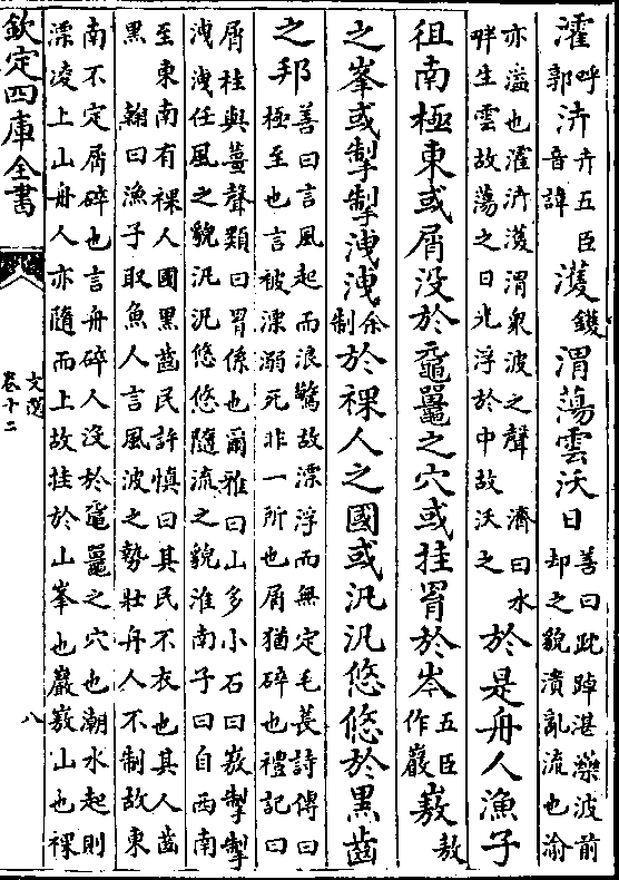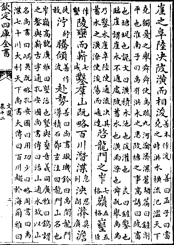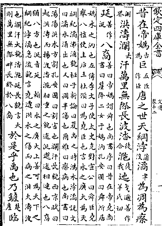 昔在帝妫(古/为)巨(五臣/作臣)唐之世天纲浡(蒲/没)潏(聿/)为凋为瘵(侧/界)洪涛澜(去/)汗万里无际长波涾(徒/合)𣵺(徒/我)迤(戈迩善作/羊氏切)