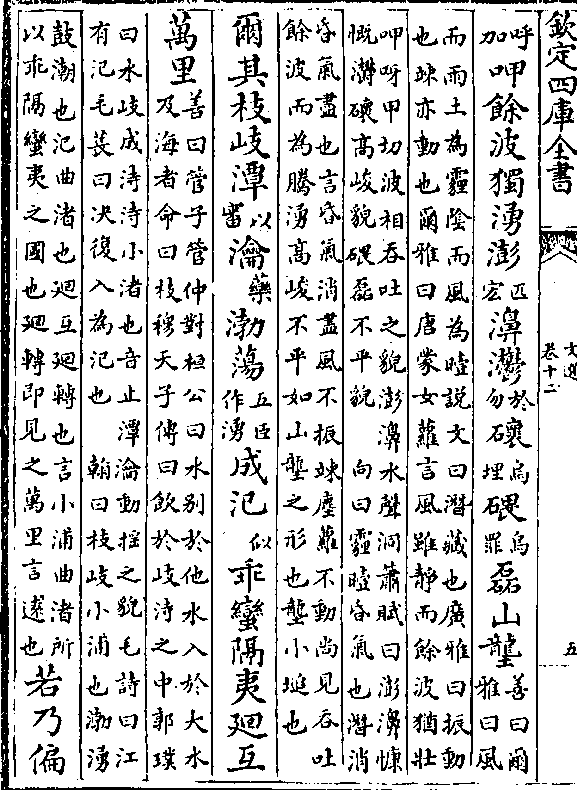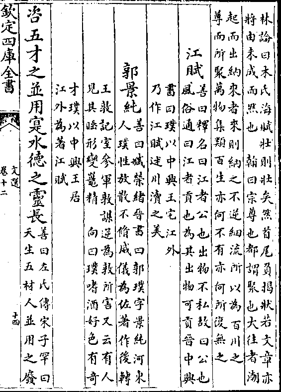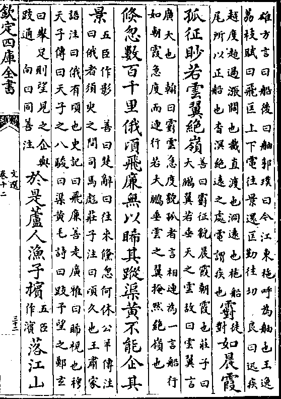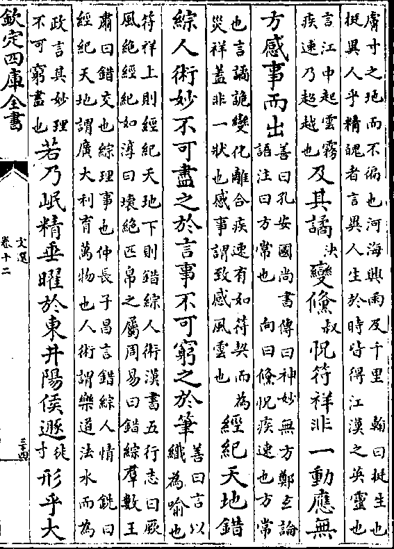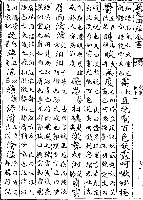 (肤寸之地而不遍也河海兴雨及千里江翰曰挺生也/挺异人乎精魄者言异人生于时皆得 汉之英灵也)(言江中起云雾/疾速乃超越也)及其谲(决/)变倏(叔/)恍符祥非一动应无