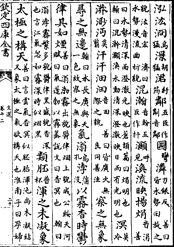 (焉浮天载地说文曰浮汎也浮铣曰/皆漫波状貌广大无岸若天 于上)浺(冲/)瀜(融/)沆(五臣/作滉)