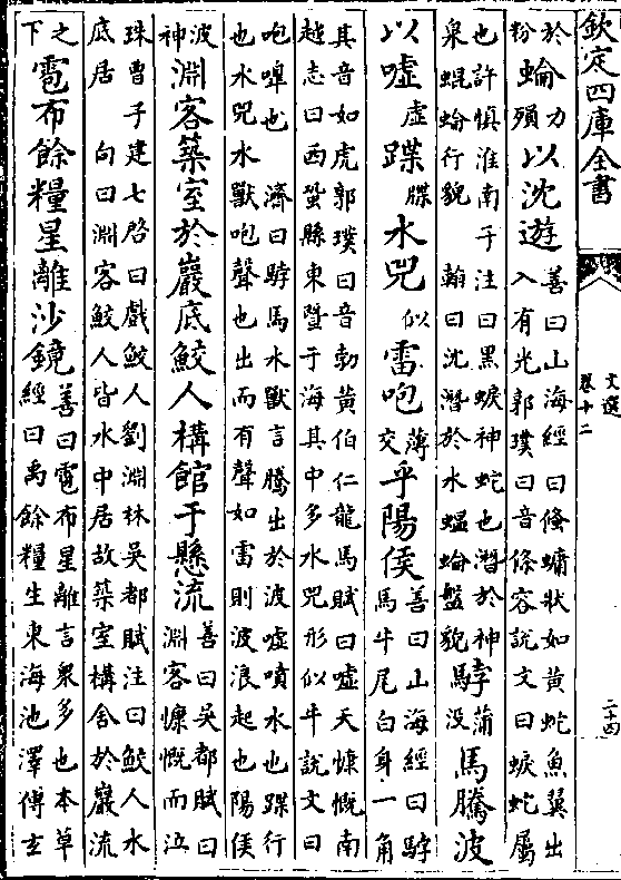 (龙焉龙俛耳曳尾/而逃 翰同善注)壮荆飞之擒蛟终成气乎太阿(善曰/吕氏)