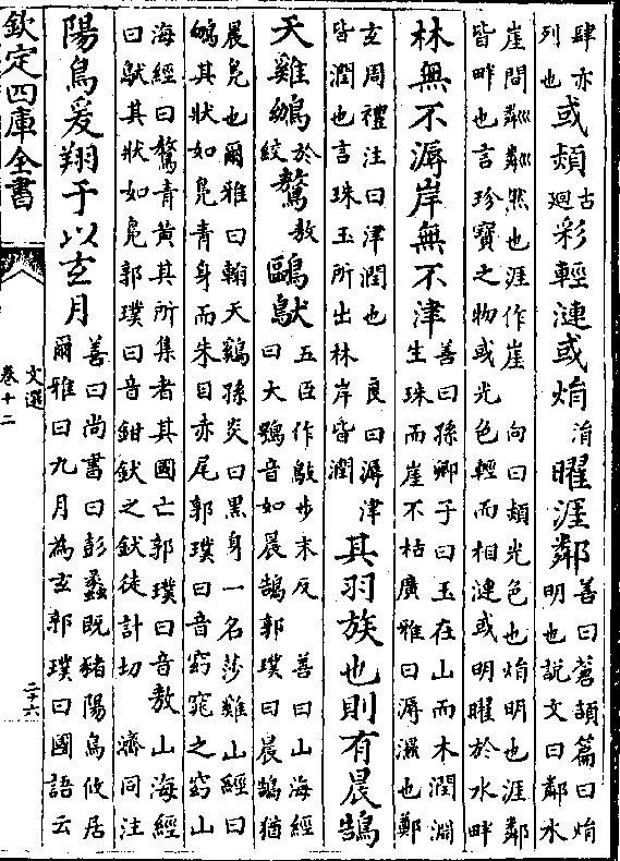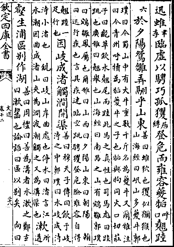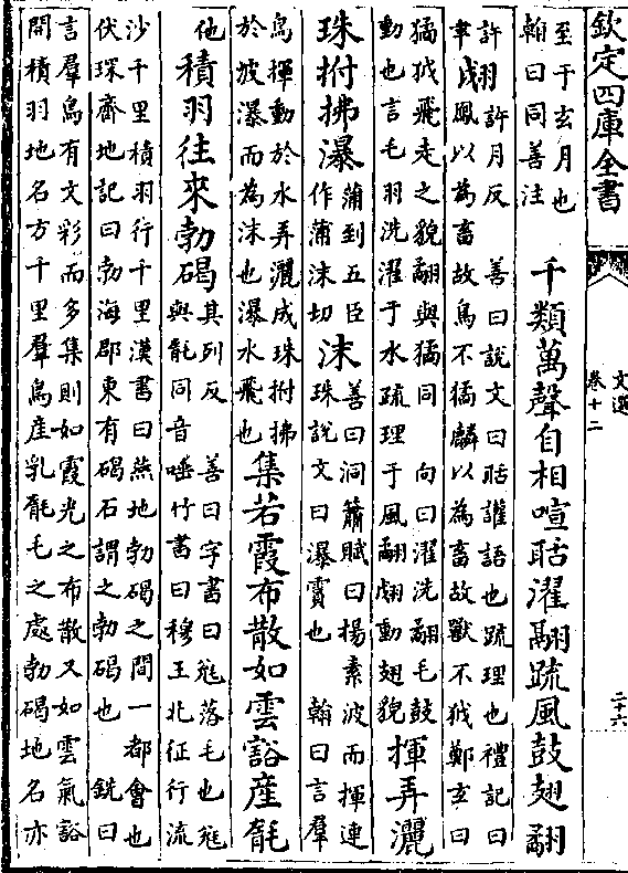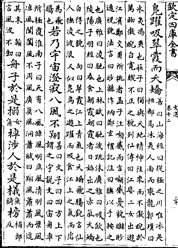 (为飞/腾也)若乃宇宙澄寂八风不翔(善曰文子曰四方上下/谓之宇说文曰宙舟车)