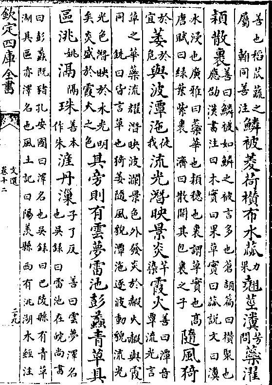 (善曰毛诗曰溯洄从之毛苌曰逆流而上曰溯洄孔安/国尚书传曰顺流而下曰沿列子曰中国之人或农或)