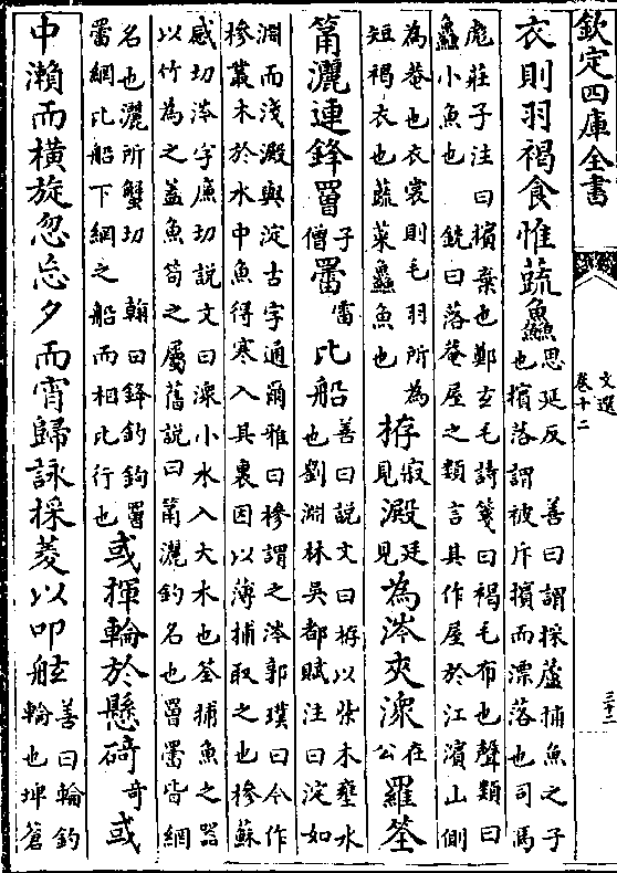 筒洒连锋罾(子/僧)䍣(雷/)比船(善曰说文曰栫以柴木壅水/也刘渊林吴都赋注曰淀如)