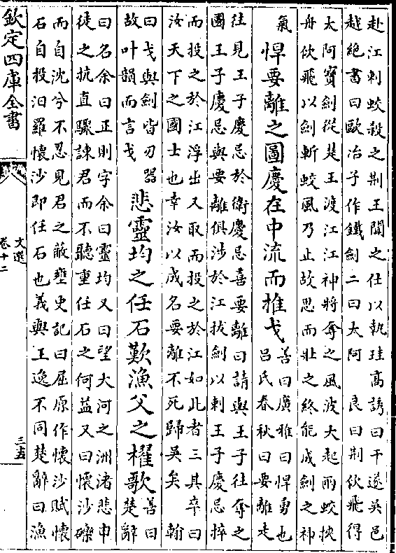(气/)悍要离之图庆在中流而推戈(善曰广雅曰悍勇也/吕氏春秋曰要离走)
