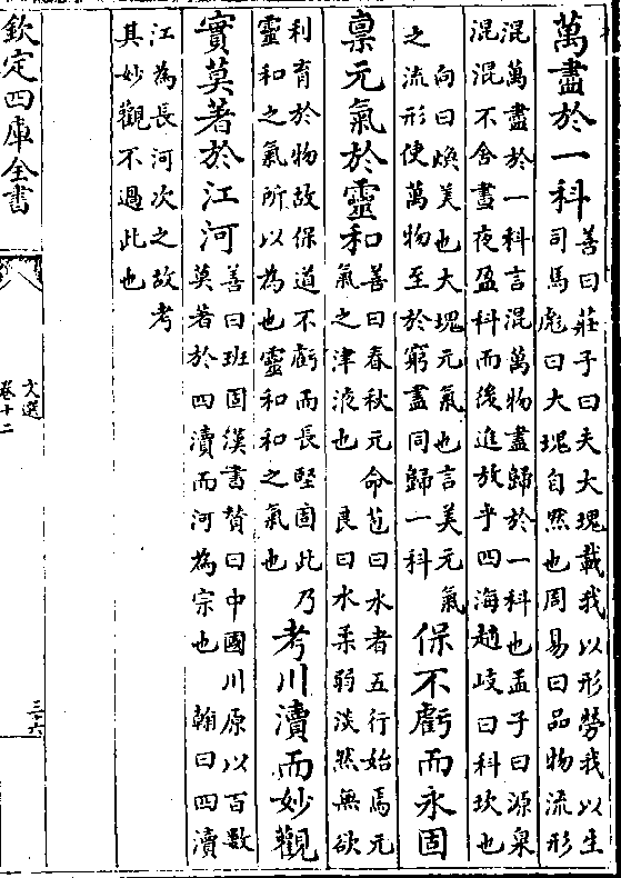 万尽于一科(善曰庄子曰夫大块载我以形劳我以生/司马彪曰大块自然也周易曰品物流形)(混万尽于一科言混万物尽归于一科也孟子曰源泉/混混不舍昼夜盈科而后进放乎四海赵岐曰科坎也)